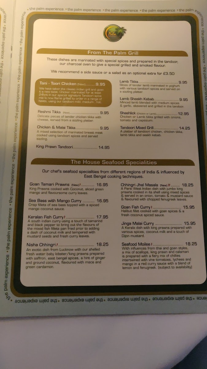 The menu at The Palm Indian Restaurant offers a thoughtfully curated selection that balances traditional South Asian flavors with subtle contemporary touches. It’s designed to suit a relaxed dining experience, whether you're dropping in for a casual bite or settling in for a leisurely evening. You’ll find a variety of comforting dishes like creamy Korma, fragrant Chicken Biryani, and crisp Garlic Naan that pair well with the warm, inviting atmosphere of the restaurant.